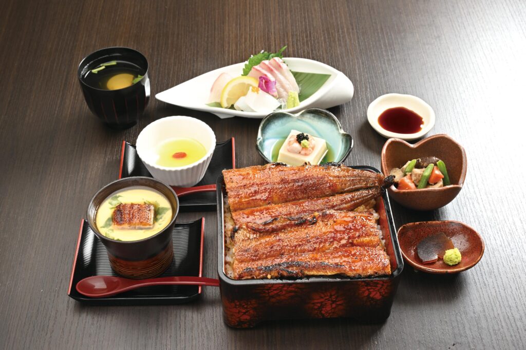 非常豪华地使用了1条鳗鱼,可享受鳗鱼切片和烤鳗鱼的美味盒饭,包含腌菜和高汤。